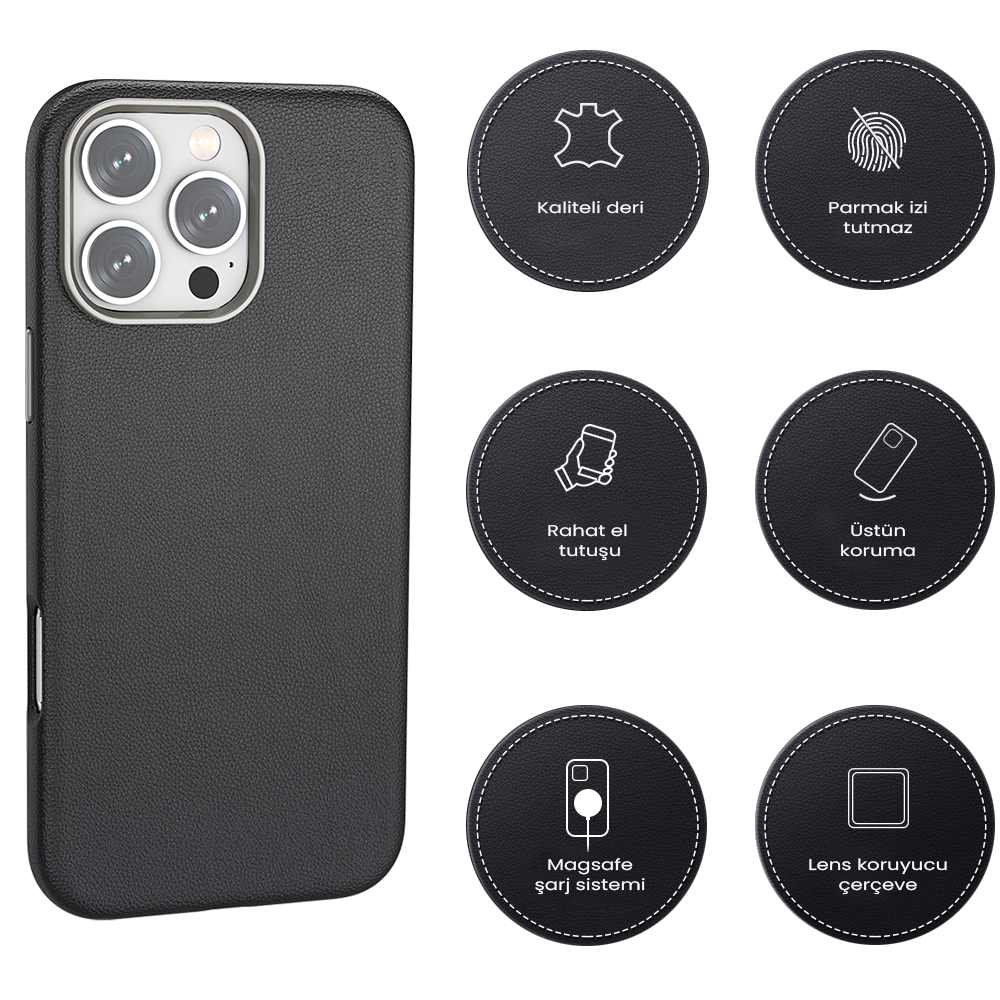 iPhone 17 Pro Spada Pelle Magsafe Siyah Kapak